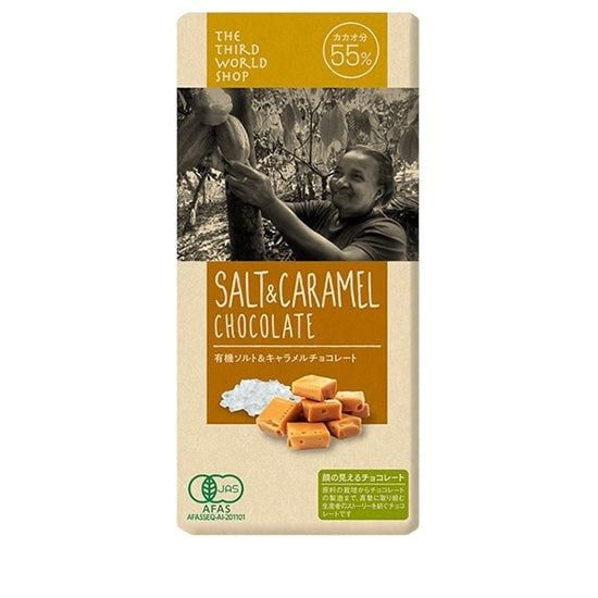 塩入りのビターチョコレートにキャラメルクランチをちりばめたチョコレート